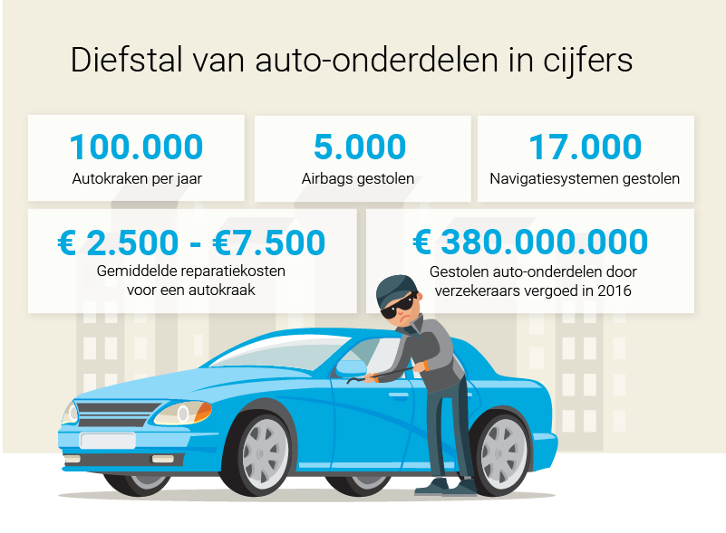 De laatste jaren hoef je minder bang te zijn dat je hele auto gestolen wordt. Specifieke onderdelen zijn geliefder en makkelijker te stelen omdat een serienummer ontbreekt. Populaire merken zijn Volkswagen, Audi, Seat, Skoda, Mercedes, BMW en Volvo. De gestolen onderdelen kunnen duizenden euro’s opleveren en worden bijvoorbeeld gebruikt voor schadeherstel in binnen- en buitenland.